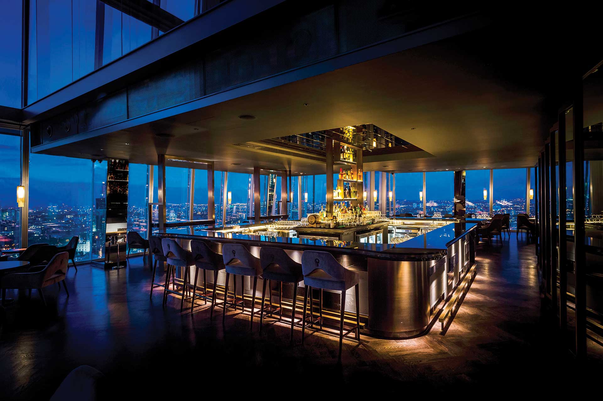 To meet their client’s requirements, the system integrators designed highly specified background music systems, with the facility for a punchier system at the Aqua Shard atrium bar, using BSS Soundweb London digital processors that were located in the central comms room on the same floor. These distribute feeds to top-brand JBL and Martin Audio loudspeakers over an extended matrix, while also offering independent zone control.