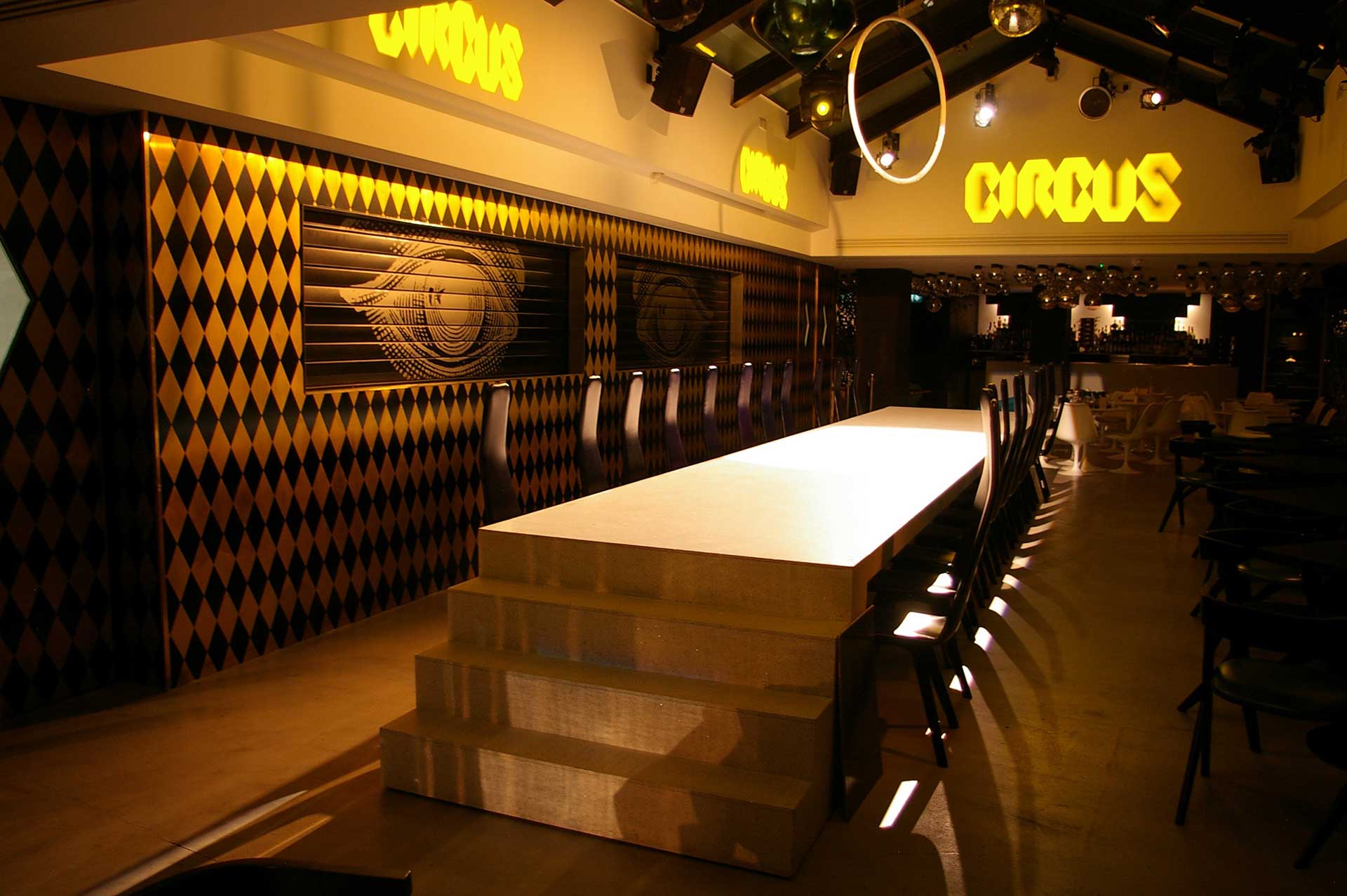 With a nod in the direction of its animalistic origins, the aptly-named Circus has been breathtakingly designed by Tom Dixon, and features a unique quartz dining table that runs the length of the club, and transforms into a dance platform later in the evening. This is surrounded by a bar at the far end, a second dining room to the side of the DJ booth, and a lounge set to the rear of the venue.